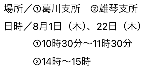 申し込み・問い合わせ/8月7日(水)10時から電話か直接市立図書館(本館)☎️077-526-4600