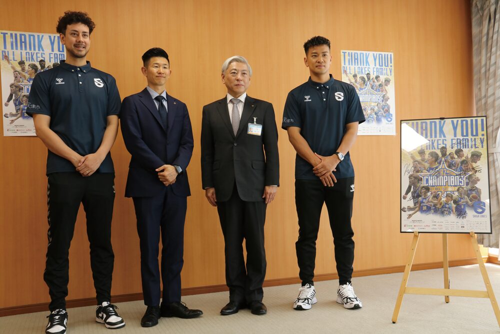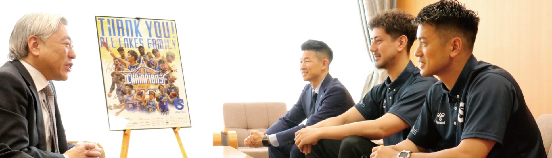 おおつ時間(8月1日号) スポーツ2024.07.18 目指せ、B 1制覇! 令和6年6月6日(木)大津市役所 大津市をホームタウンとして活動する男子プロバスケットボールチーム『滋賀レイクス』の原社長、田原隆徳選手、眞庭城聖選手が大津市役所を表敬訪問され、Bリーグ2023-24シーズンの終了、B2優勝とB1復帰を報告されました。昨年訪問時の「最短B1復帰!」宣言を見事実現されたチームに、市長からお祝いの言葉と来季のさらなる活躍にエールが送られました。 この記事の関連タグ 2024年8月号 おおつ時間 友だちや家族に教える ポストする LINEで送るURLをコピーするコピーしました おすすめの関連記事 関連記事はありません 前の記事 次の記事