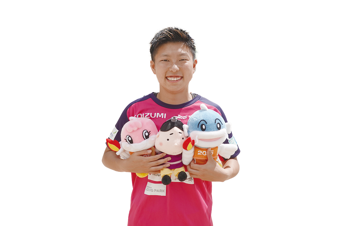 サッカーはみんなで一つのボールをつないで、ゴールを目指すところが魅力です。チームスポーツなので、仲間同士のコミュニケーションを意識しています。国スポが滋賀県で開催されることはとても光栄だと感じています。国スポを通して女子サッカーに少しでも興味を持ってもらえたら嬉しいです。