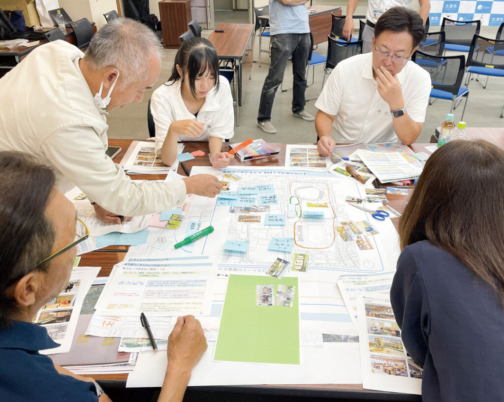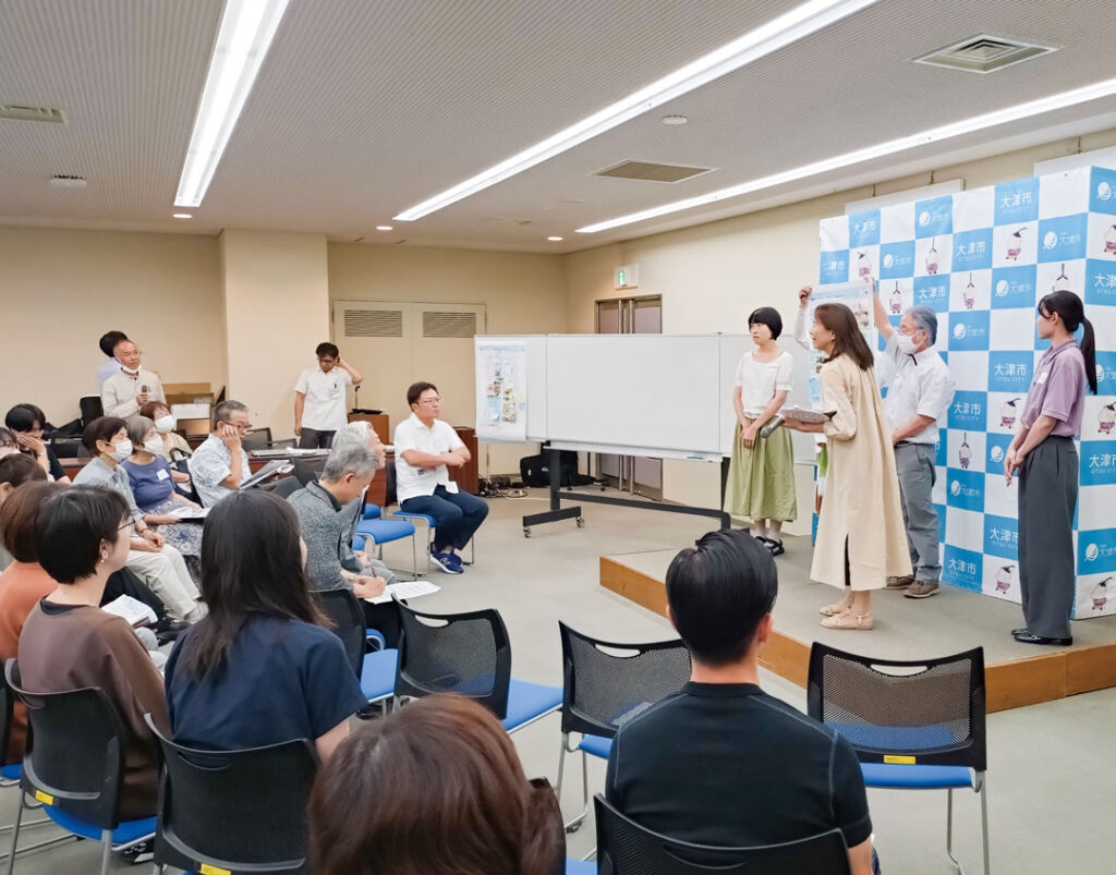 今年3月から開始した市民ワークショップの全4回が終了しました。最終回は、「将来の新大津市庁舎のあり方について考えてみよう!」をテーマに、これまでのテーブルワークでとりまとめた意見を発表しました。